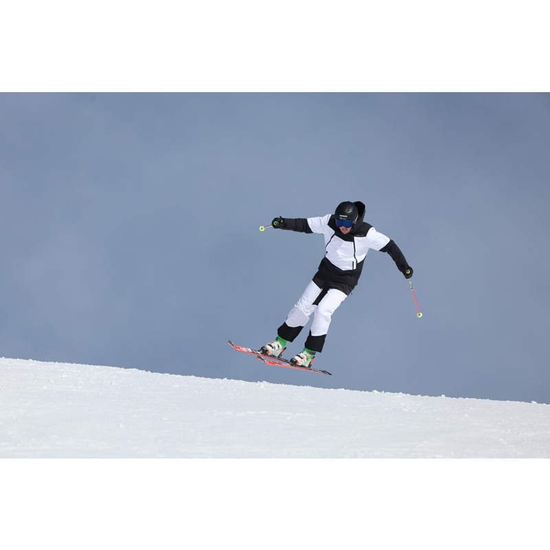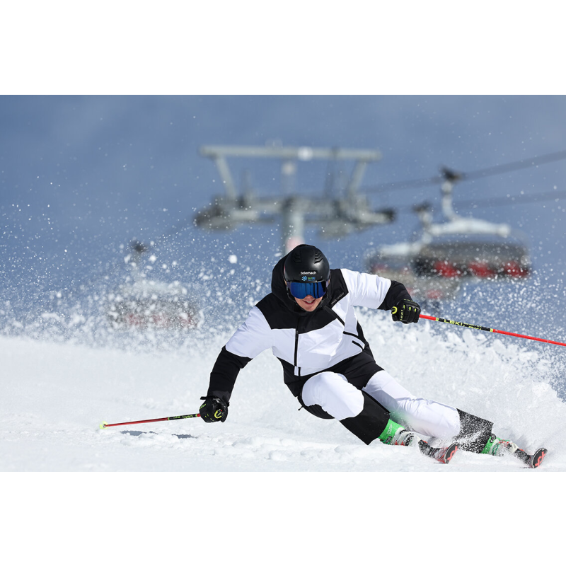 RINO – moderna smučarska jakna z inovativnimi materiali in privlačnim asimetričnim dizajnom s sprednjo stransko zadrgo, ustvarjena za tiste, ki želijo navdušiti na smučišču.